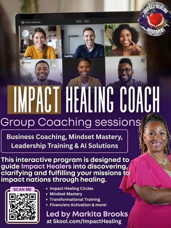 > Impact Healing Coaching - Group Coaching Sessions led by Markita Brooks to guide Impact Healers into discovering, clarifying and fulfilling your missions to impact nations through healing, wealth creation and AI solutions
